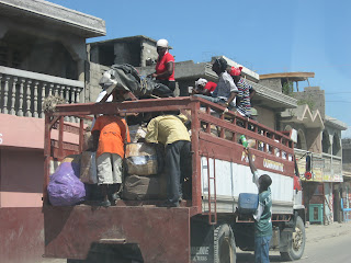 I love his accent and the way he phrases things. He would always say "open it" for "turn it on." T says that's the literal translation. He also would say "here is it" instead of "here it is." And all the kids at the O like to try to trick you and then another one will say "is not true" which always comes out sounding like "ees not twue" with the emphasis on "ees". They were surprised at T's creole. At first J told him not to speak in Creole. Apparently he wanted his American daddy to speak in English. Then the Creole really came handy later and J was okay with it. The flight from PAP to Cap Haitian only takes 23 minutes. J grabbed his ears when we were taking off. I showed him how to pop his ears by opening his mouth wide. He spent the whole ascent opening and closing his mouth repeatedly. He was surprised to see the clouds right out the window and he wanted to open the window. He quickly got bored with the clouds and laid his head in my lap. By then we were descending and I told him to look for grandma. He popped up and looked out the window and said, "We are finished?" He's hysterical.